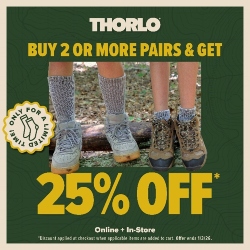 Our Thorlos sale is back! Now until January 3rd, when you purchase two pairs or more of our Thorlos brand socks you get 25% off! Be sure to stock up on what you need for camp fun this year!